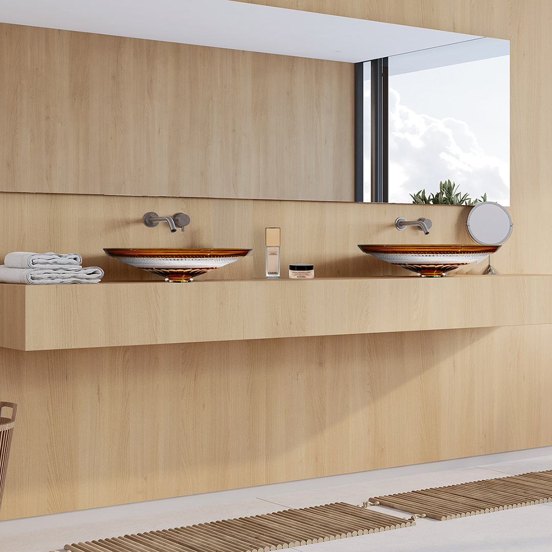 非常に高度なカッティング技術から生まれる洗面ボウルは、どの角度から見ても美しい輝きを放ちます。