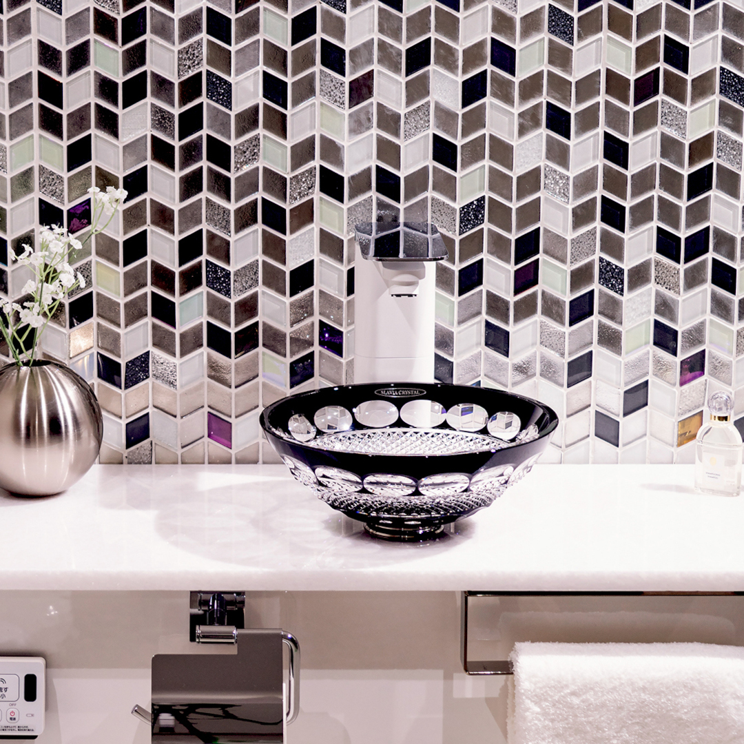 輝きと透明感のバランスが美しく調和され、限られた洗面スペースを華やかに演出します。