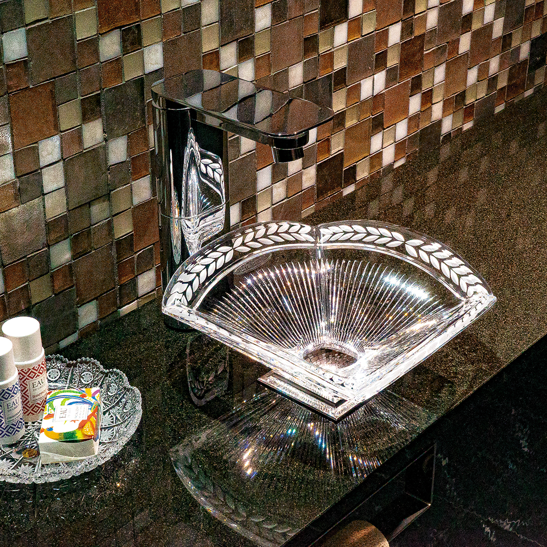 先祖代々受け継がれて来た伝統のボヘミアンクリスタルのカッティング技術による、繊細で美しい輝きは洗面スペースをゴージャスに演出します。