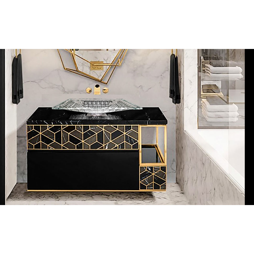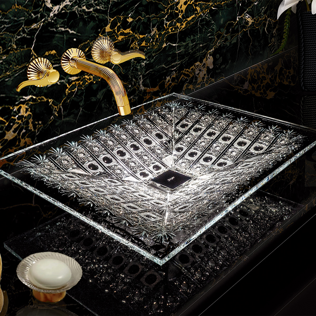 先祖代々受け継がれて来た伝統のボヘミアンクリスタルのカッティング技術による、繊細で美しい輝きは洗面スペースをゴージャスに演出します。