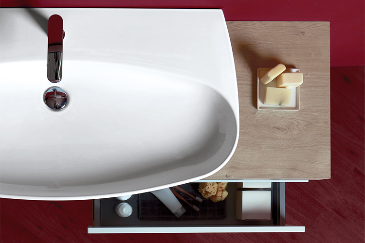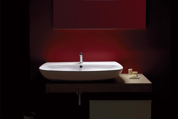 古代より有名なトスカーナの温泉地Bagno Vignoni(バーニョ・ヴィニョーニ)の名を冠するヴィニョーニ。時の皇帝やメディチ家も利用したとされ、豊かで風光明媚な土地として知られています。バーニョ・ヴィニョーニの涌き上がる温泉の泡をイメージしたユニークなフォルムは、優しい楕円形と驚異的にスリムなエッジが融合し、エレガントかつ軽快な印象。優雅でゆったりとしたシルエットは、デッキ部をシェルフ代わりにお使いいただけます。
