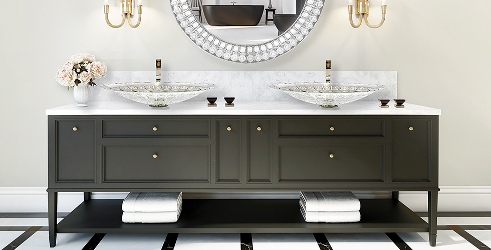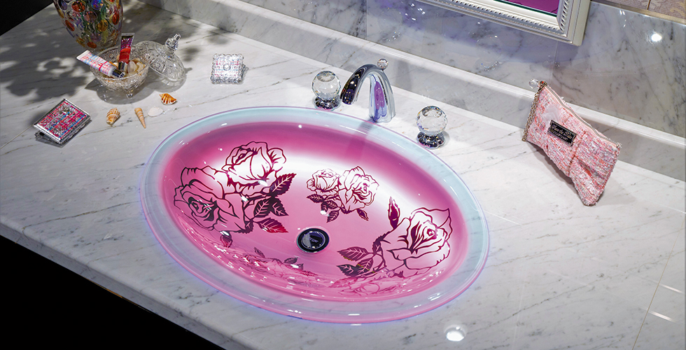 優しく高級感溢れるムードをもつマジェスティックは、熟練の職人がカッティングする伝統的なモデルからダイアモンド粉で描くフラスティングアートモデルまで、かってない優美な輝きと気品に満ちた伝統的な美しさで新しい洗面スペースを演出します。