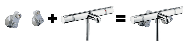 露出タイプの浴室水栓は、比較的施工が簡単で、リフォームなど既存の配管への取り付けも可能です。