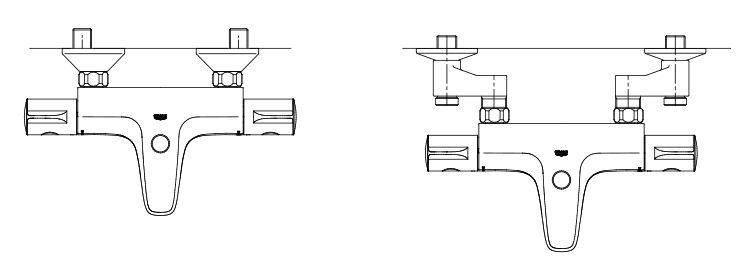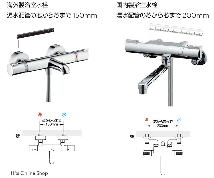 一般に、日本の浴室の湯水配管ピッチは200mmの事が多く、GROHEやHANSGROHEなどの湯水配管ピッチ150mmの海外製浴室水栓をリフォームなどで既存の配管に接続する場合、配管ピッチが合わない場合があります。