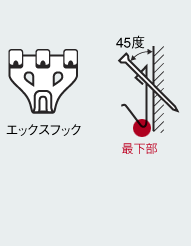 - エックスフックを使用の際には専用釘を45°に打ち込むようご注意ください。