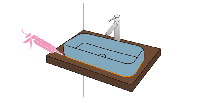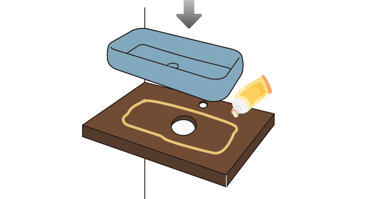 洗面器よりはみだした接着剤は素早く拭き取ってください。