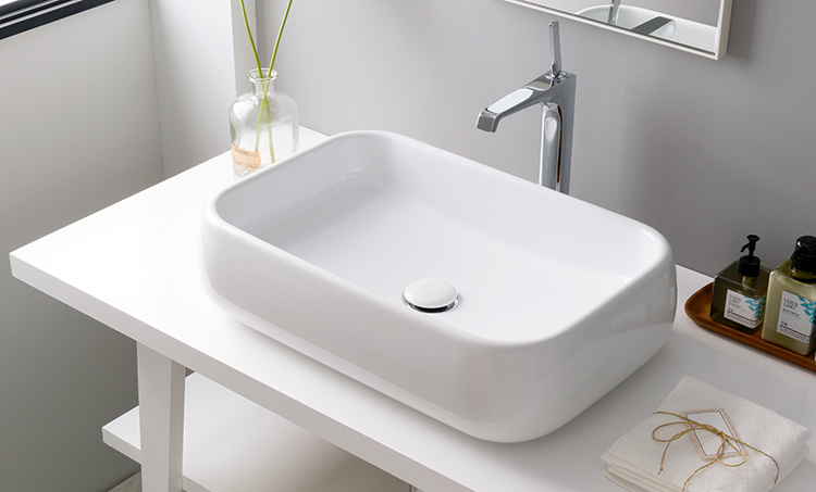 カウンター置き型の洗面器(CIELO・SIMAS・CATALANOなど)の施工方法をご紹介します。水栓金具取り付け位置さえ注意すれば比較的施工は容易です。