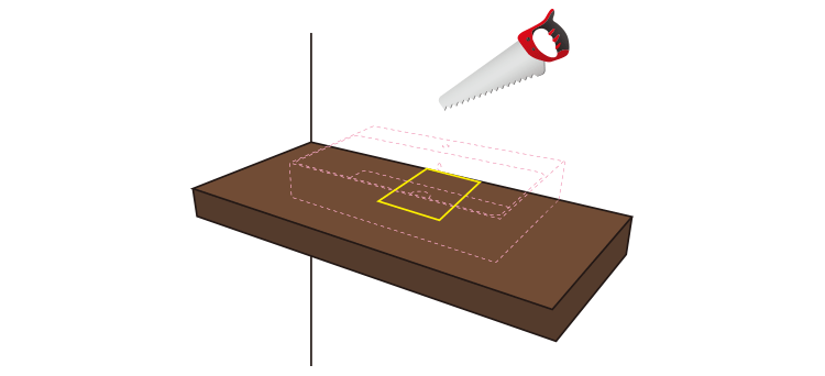 1洗面器設置位置に合わせてカウンターを切り欠いてください。 開口寸法は製品図面を参照ください。カウンター小口は仕上げてください。