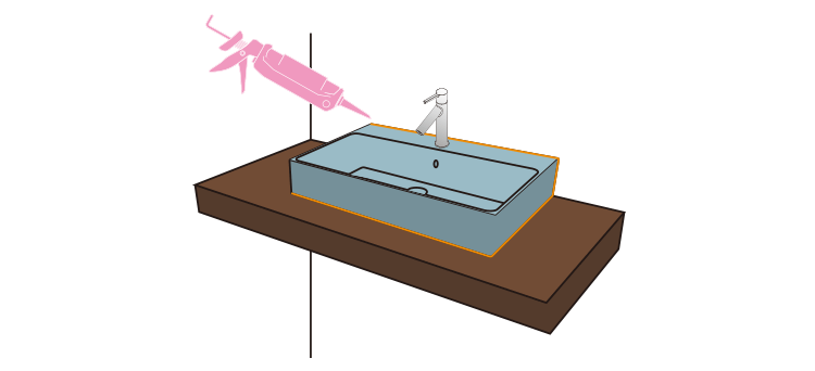 ボウルと接する箇所(カウンター・壁)にはメジシールを充填して防水処理をしてください。 -