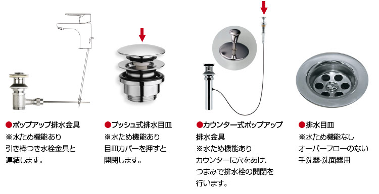 排水ヘッド部(ポップアップ排水金具・排水目皿)について