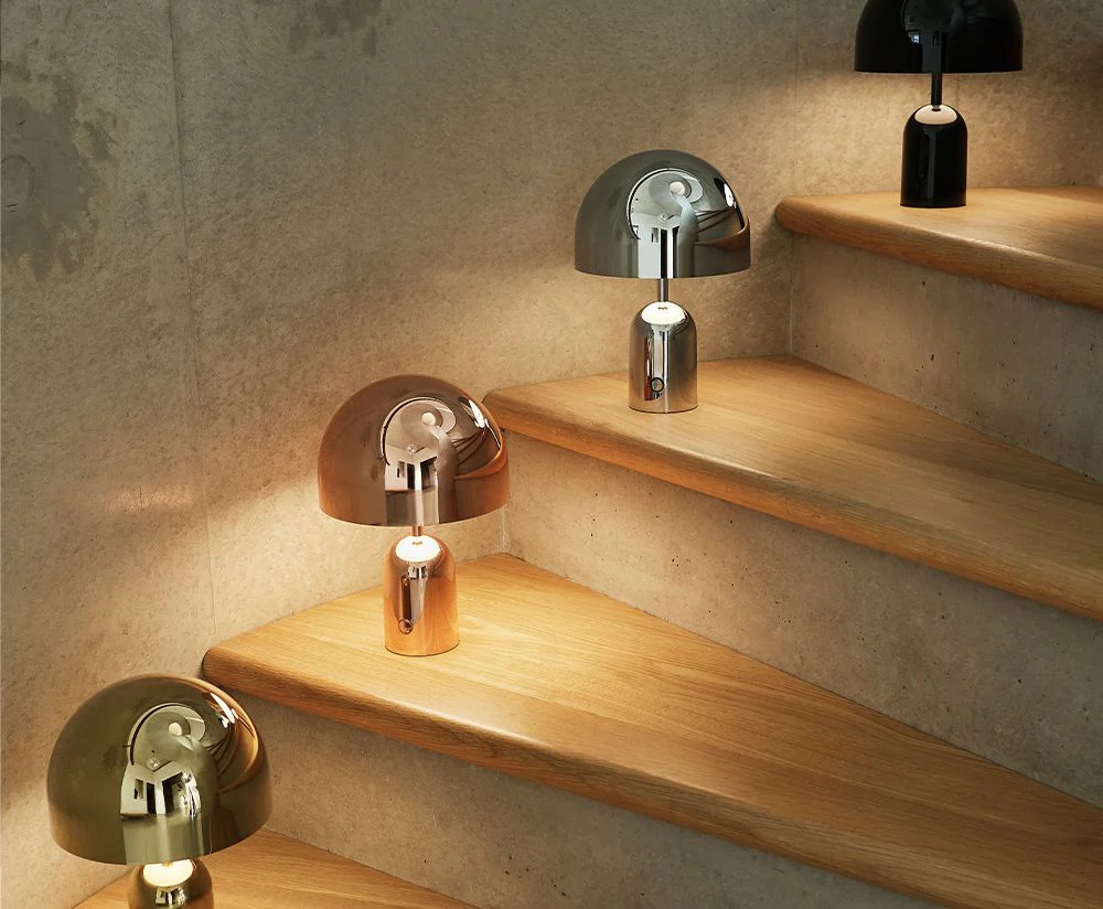 古典的な「呼び鈴」のシルエットからその名を冠し、これまで、テーブル、フロアライトとしてお馴染みのBELL(ベル)がポータブルのコレクションに加わりました。 鏡面加工された本体部分が周囲の景色や光を鏡のように映し出すことで、どのようなシーンにも溶け込みます。