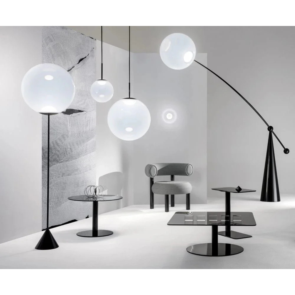 シェードの色が半透明であるがゆえに、昼間は実体のないゴーストのような儚さを保ち、夜になると見事なまでに明るく周囲を照らす球体へと変化します。トム・ディクソンが独自に開発した内蔵型LEDを使用することにより、柔らかく拡散する美しい光を実現しました。