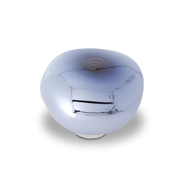 シェードの中は特殊な真空蒸着によって塗装され、点灯時には、物体が溶けるような視覚効果を生み出し、消灯すると空気を漂う鏡面のオブジェへと変化します。