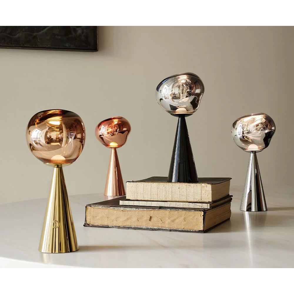 MELT PORTABLE(メルト・ポータブル)は、トム・ディクソンのブランド・アイコンとしての地位を確立したMELT(メルト)シリーズのポータブル・ライトとして2023年のミラノ・サローネで発表されました。 これまでのペンダントライトと比べるとサイズは小振りですが、MELT特有の「物体が融解するような」有機的なデザインをポータブル・ライトで再現しました。