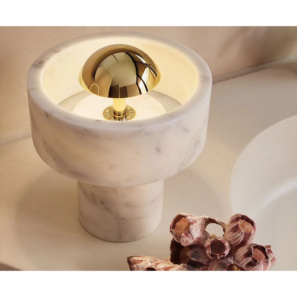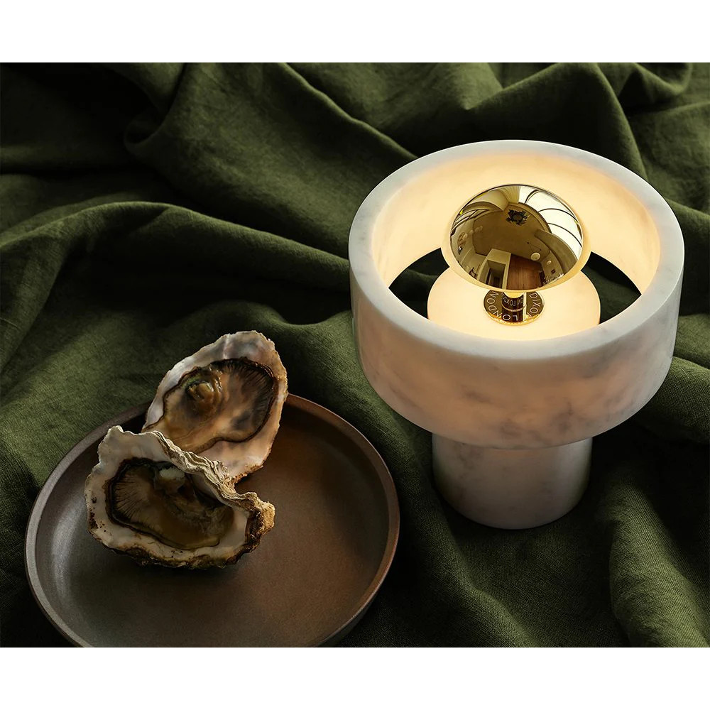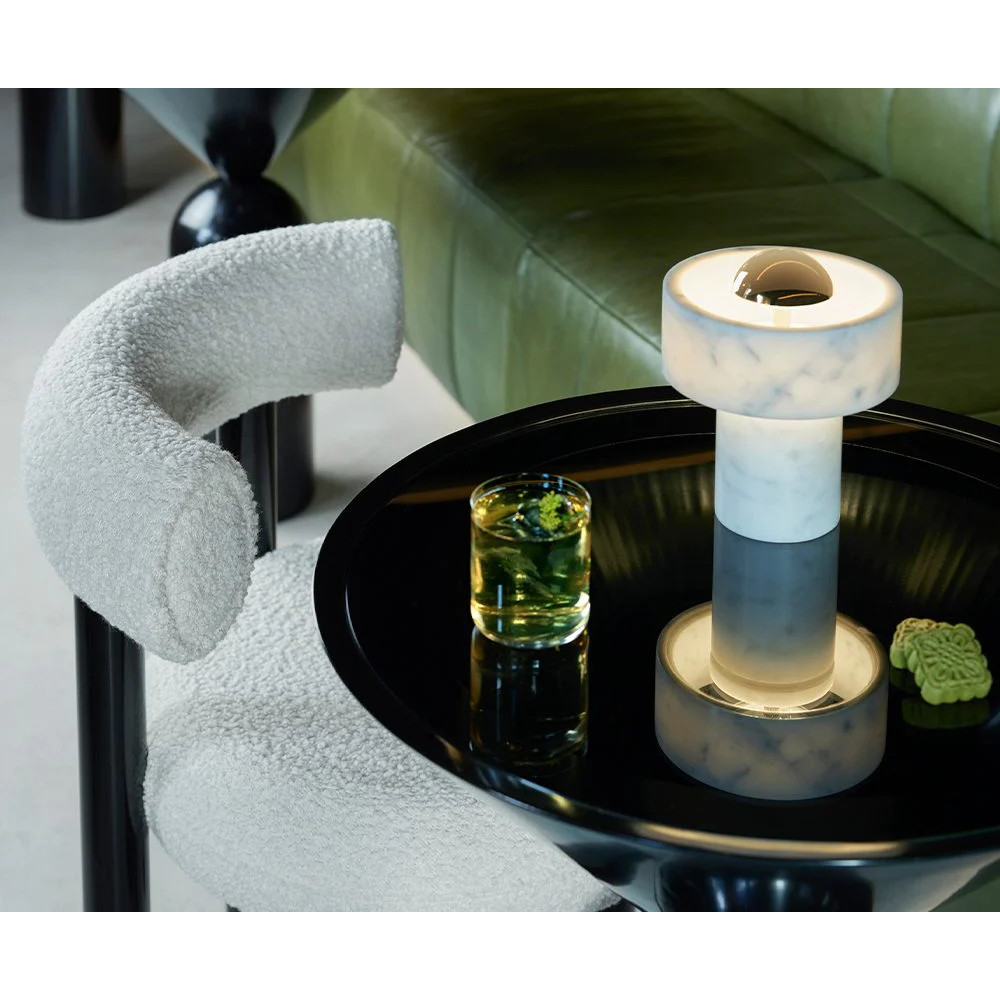 STONE(ストーン)の素材は、大理石が持つ独特の気品と風合いと経年劣化しない特徴を持ち、他のインテリア製品にも多用されています。 外側の大理石のリングが光源の周りを輪のように浮いて見えるデザインは、太陽の周りに現れる、虹のような光の輪のような視覚効果を産み出します。 調光は光源部分のゴールド・カップ部分がタッチ式のスイッチになっています。 フル充電で約8~10時間ご使用頂けます。