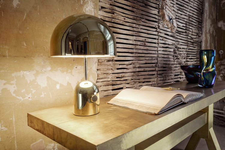 ベルは還元主義の運動であり、周囲の特性や色を反映した磨かれた表面です。 テーブルランプには、一体型の滑らかな調光器が取り付けられています。