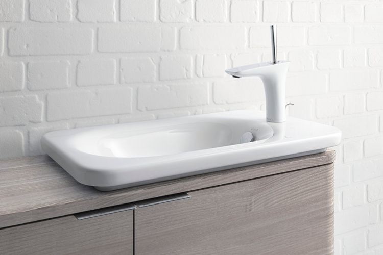 家族一人ひとりが快適に使えることをコンセプトにつくられたネストトレンディシリーズ。デザイン性の高いオーガニックなフォルムが、水回り空間を優しく特徴付けます。