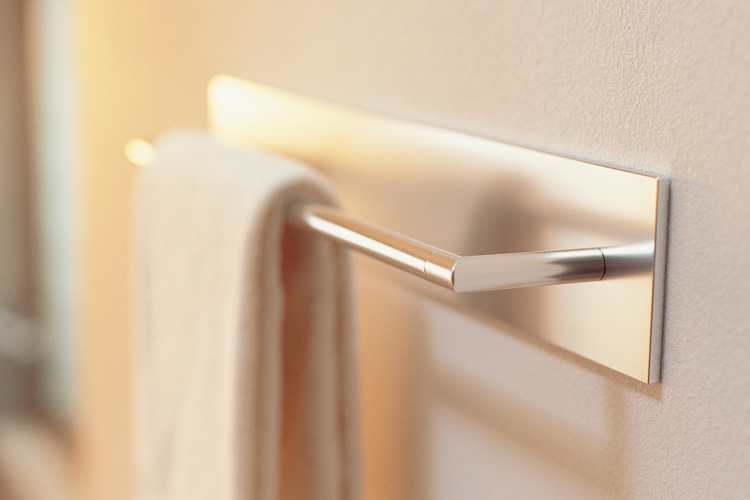 シャープかつシンプルを追求し、アルミプレートをフォーマットとしたシステム発想から生まれ、レバーハンドルからコートフック、トイレットペーパーホルダーなど多彩なアイテムを展開。